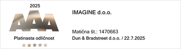 Kot dokaz stabilnosti in dobrega poslovanja podjetja smo prejeli najvišji Platinasti certifikat poslovne odličnosti AAA, ki ga podeljuje podjetje Bisnode d.o.o..
